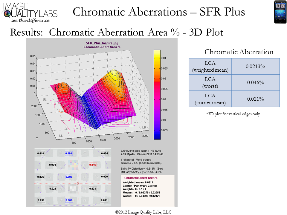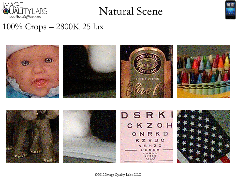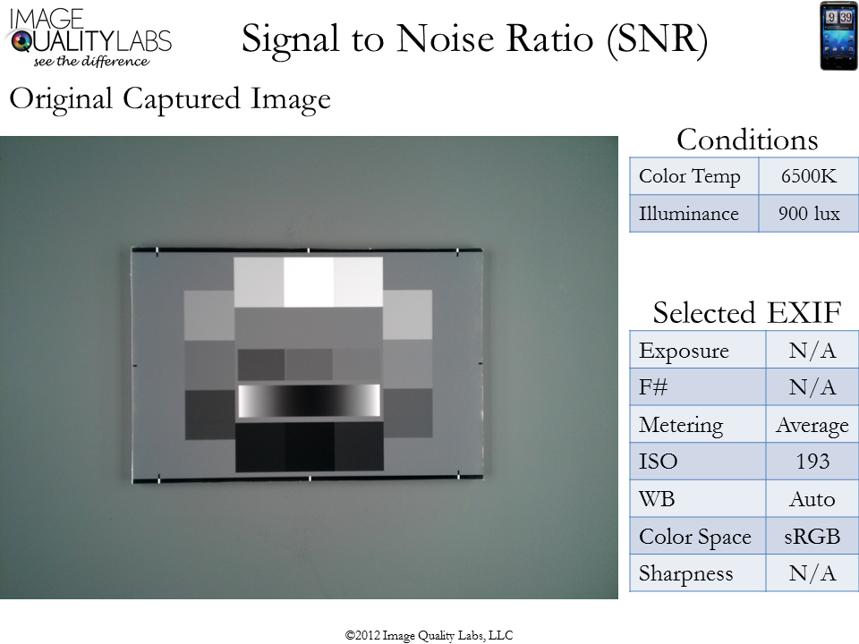 测试的图像质量参数包括:: 锐度, SMIA TV 畸变,视场角, 横向色差, 非线性信号响应, 渐晕 (亮度和色彩), 闪光灯均匀性, 动态范围, 信噪比 (SNR), 色彩还原/白平衡,以及实景主观和客观评价。