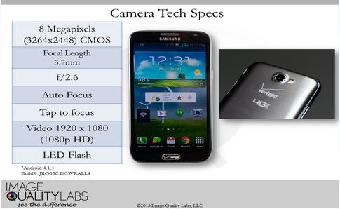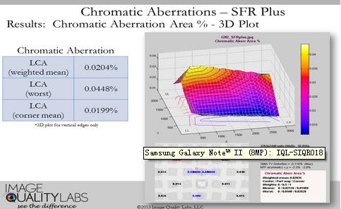 测试的图像质量参数包括:: 锐度, SMIA TV 畸变,视场角, 横向色差, 非线性信号响应, 渐晕 (亮度和色彩), 闪光灯均匀性, 动态范围, 信噪比 (SNR), 色彩还原/白平衡,以及实景主观和客观评价。