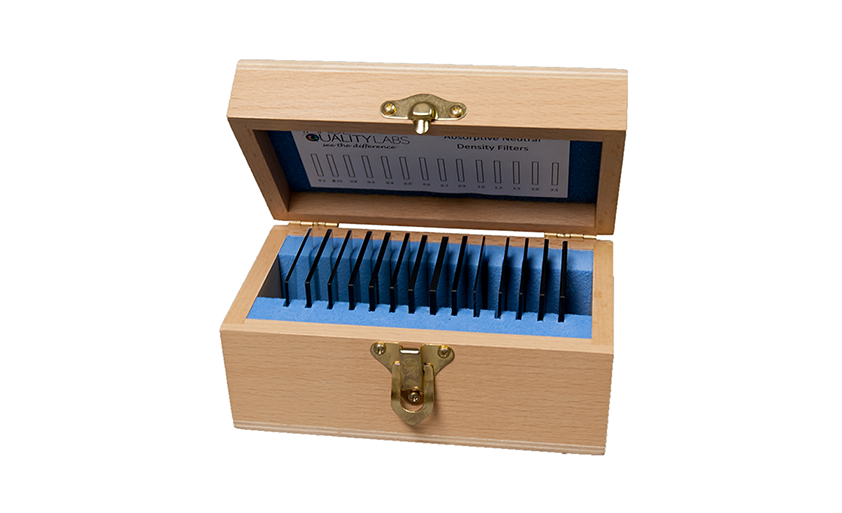 标准配制包括14 种密度的光学滤镜,包括g0.1, 0.15, 0.2, 0.3, 0.4, 0.5, 0.6, 0.7, 0.9, 1.0, 1.3, 1.5, 2.0, 2.5