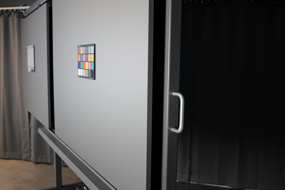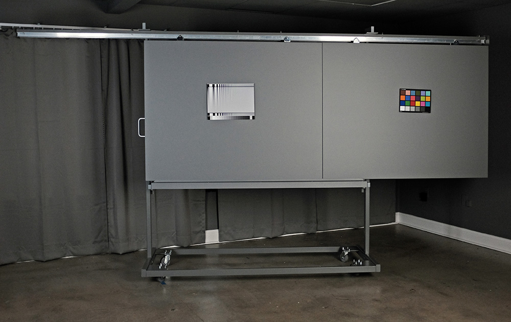 Image Quality Labs提供高效、多功能的中性灰背板,适用于安装各种图卡,并提供标准的中性灰背景。此中性灰背板带有可移动和锁止的滚轮,方便移动和旋转。 可选单块背板,或多块背板,最多支持6张48X60英寸的中灰背板,可以快速切换不同的测试卡,提高测试效率。此外实景台也是可选项,可用于主观实景分析。 每块金属背板的表面都处理为标准的孟赛尔N5中性灰色,并可以吸附磁性装裱的测试卡。无论测试卡的大小,都可以轻松更换。产品特点: